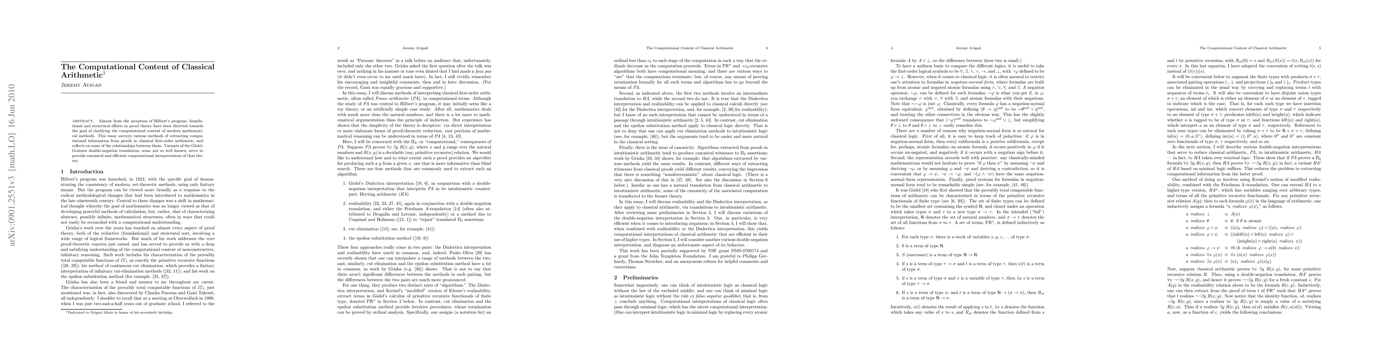 Almost from the inception of Hilbert's program, foundational and structural efforts in proof theory have been directed towards the goal of clarifying the computational content of modern mathematical methods. This essay surveys various methods of extracting computational information from proofs in classical first-order arithmetic, and reflects on some of the relationships between them. Variants of the G\"odel-Gentzen double-negation translation, some not so well known, serve to provide canonical and efficient computational interpretations of that theory.