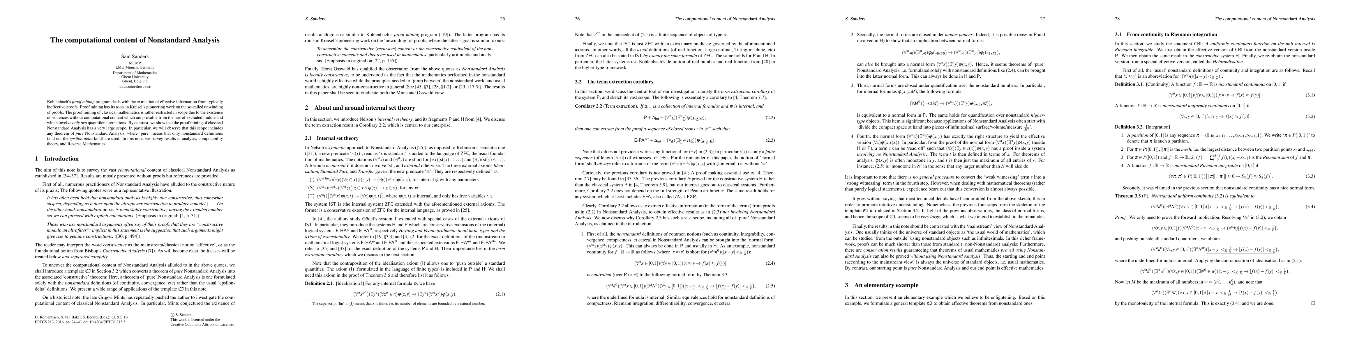 This paper explores the computational content of Nonstandard Analysis through the lens of proof mining, demonstrating that it has a broader scope compared to classical mathematics. It highlights the effectiveness of extracting effective information from proofs in Nonstandard Analysis, particularly those involving pure nonstandard definitions.