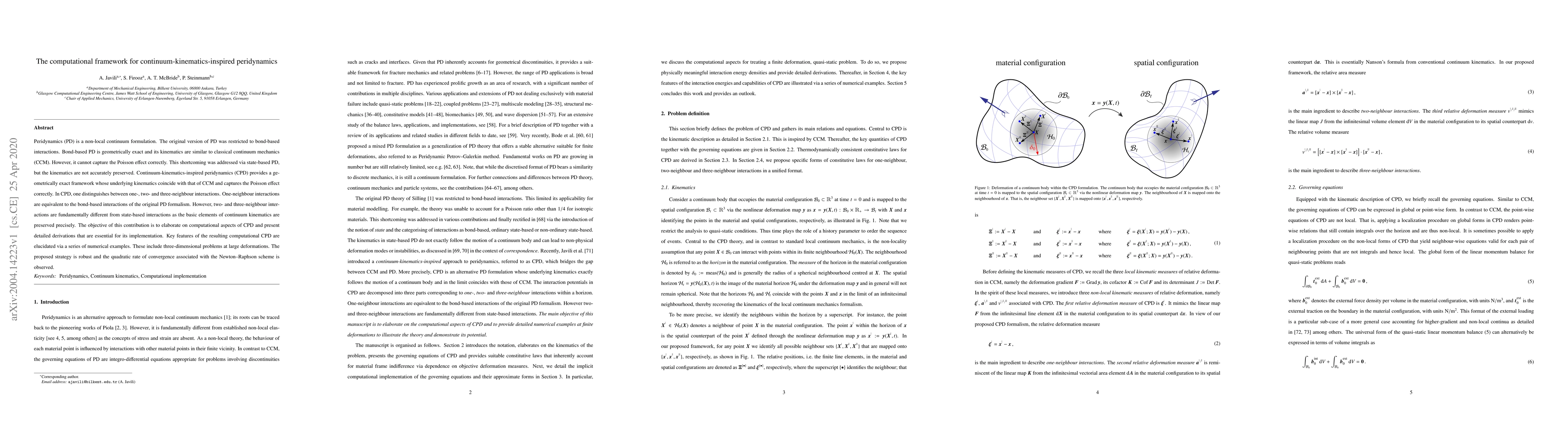 This paper introduces a computational framework for continuum-kinematics-inspired peridynamics (CPD), which preserves the kinematics of classical continuum mechanics while accurately capturing the Poisson effect. The framework distinguishes between different interaction levels, ensuring precise preservation of continuum kinematics, and demonstrates robust performance through numerical examples.