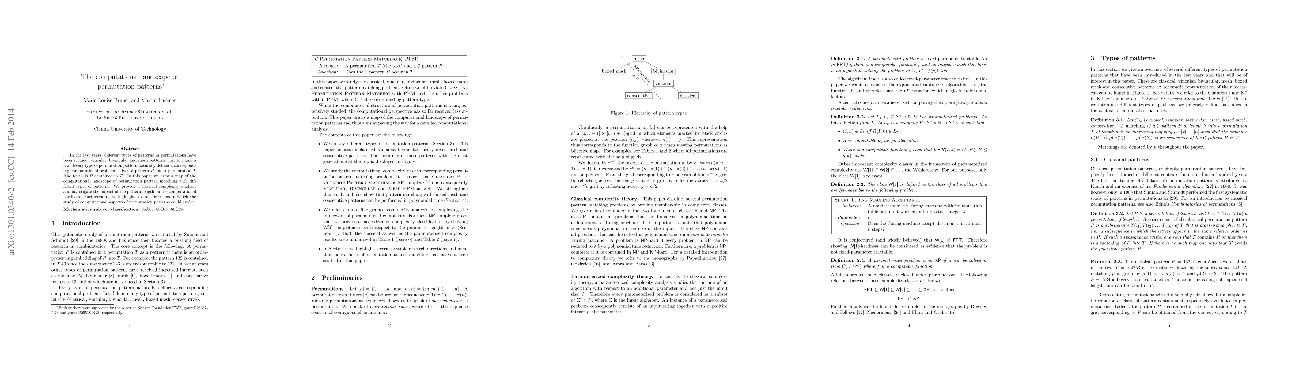 This paper maps the computational complexities of various permutation pattern matching problems, analyzing the difficulty of determining whether specific patterns are contained within permutations. It also examines how pattern length affects computational hardness and suggests future research directions in this field.