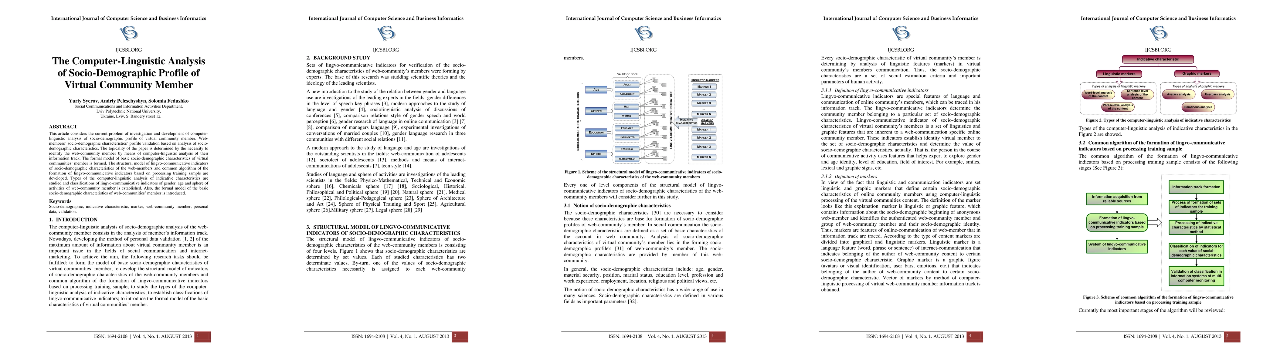 This paper develops a formal and structural model for analyzing the socio-demographic profile of virtual community members through computer-linguistic techniques. It introduces algorithms for processing linguistic data to classify gender, age, and activity sphere, establishing a framework for identifying web-community members based on their information track.