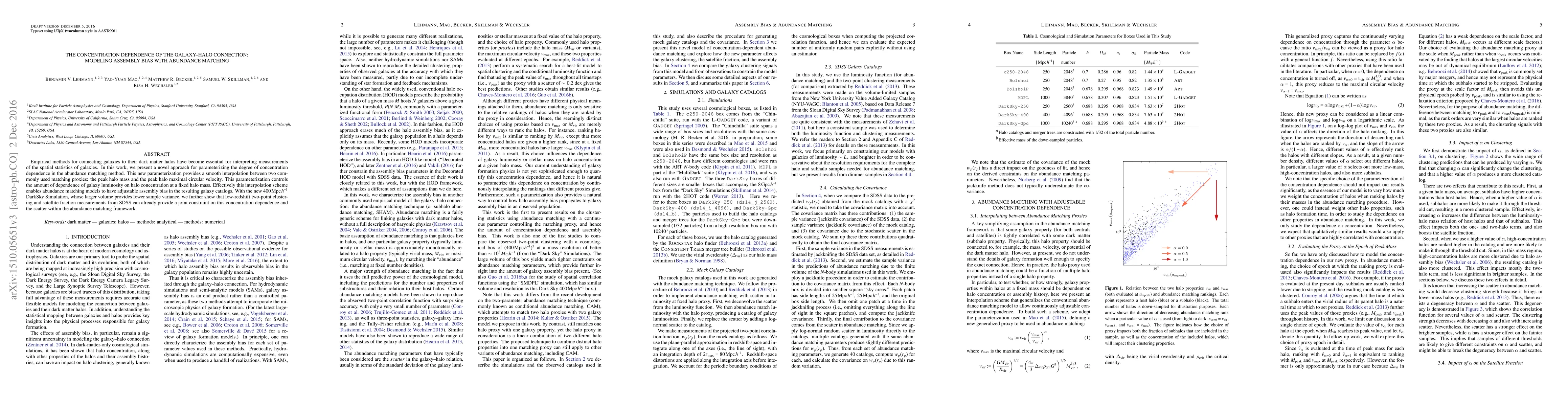 Empirical methods for connecting galaxies to their dark matter halos have become essential for interpreting measurements of the spatial statistics of galaxies. In this work, we present a novel approach for parameterizing the degree of concentration dependence in the abundance matching method. This new parameterization provides a smooth interpolation between two commonly used matching proxies: the peak halo mass and the peak halo maximal circular velocity. This parameterization controls the amount of dependence of galaxy luminosity on halo concentration at a fixed halo mass. Effectively this interpolation scheme enables abundance matching models to have adjustable assembly bias in the resulting galaxy catalogs. With the new 400 Mpc/h DarkSky Simulation, whose larger volume provides lower sample variance, we further show that low-redshift two-point clustering and satellite fraction measurements from SDSS can already provide a joint constraint on this concentration dependence and the scatter within the abundance matching framework.