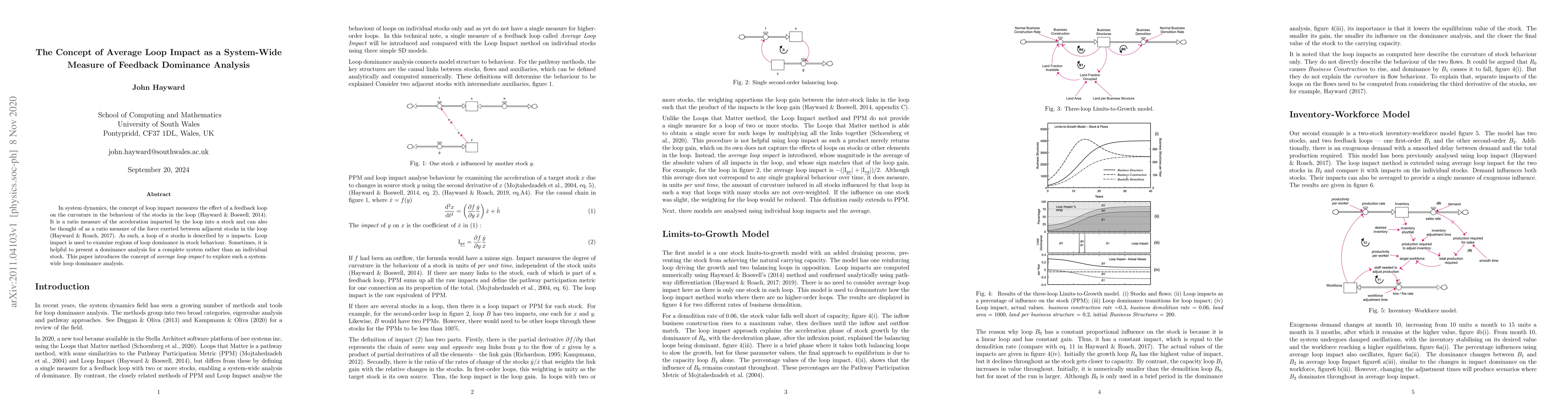 In system dynamics, the concept of loop impact measures the effect of a feedback loop on the curvature in the behaviour of the stocks in the loop (Hayward & Boswell, 2014). It is a ratio measure of the acceleration imparted by the loop into a stock and can also be thought of as a ratio measure of the force exerted between adjacent stocks in the loop (Hayward & Roach, 2017). As such, a loop of n stocks is described by n impacts. Loop impact is used to examine regions of loop dominance in stock behaviour. Sometimes, it is helpful to present a dominance analysis for a complete system rather than an individual stock. This paper introduces the concept of average loop impact to explore such a system-wide loop dominance analysis.
