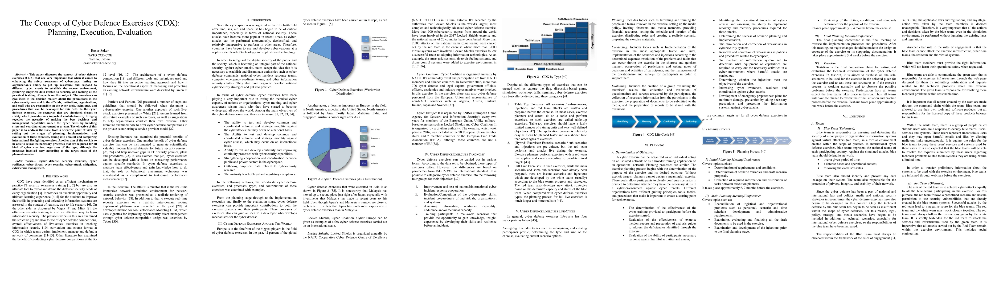 This paper discusses the concept of cyber defence exercises -CDX- that are very important tool when it comes to enhancing the safety awareness of cyberspace, testing an organization's ability to put up resistance and respond to different cyber events to establish the secure environment, gathering empirical data related to security, and looking at the practical training of experts on this subject. The exercises can give ideas to the decision makers about the precautions in the cybersecurity area and to the officials, institutions, organizations, and staff who are responsible on the cyber tools, techniques, and procedures that can be developed for this field. In the cyber defense exercises, the scenarios that are simulated closest to reality which provides very important contributions by bringing together the necessity of making the best decisions and management capabilities under the cyber crisis by handling stress and coordinated movement as a team. The objective of this paper is to address the issue from a scientific point of view by setting out the stages of planning, implementation, and evaluation of these exercises, taking into account and comparing international firefighting exercises. Another aim of the work is to be able to reveal the necessary processes that are required for all kind of cyber exercises, regardless of the type, although the processes involved vary according to the target mass of the planned exercise.