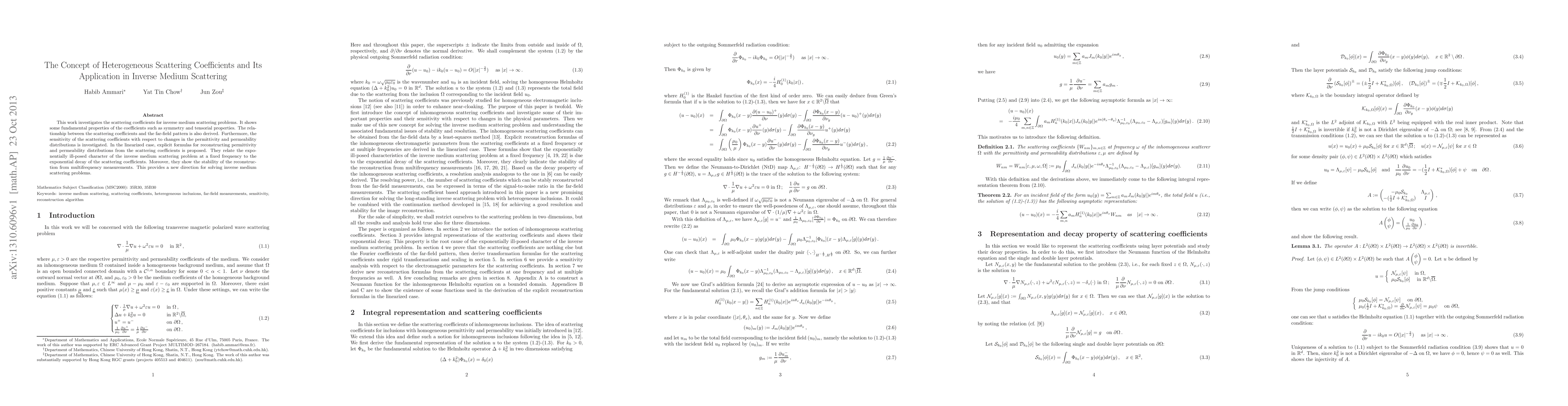 This work investigates the scattering coefficients for inverse medium scattering problems. It shows some fundamental properties of the coefficients such as symmetry and tensorial properties. The relationship between the scattering coefficients and the far-field pattern is also derived. Furthermore, the sensitivity of the scattering coefficients with respect to changes in the permittivity and permeability distributions is investigated. In the linearized case, explicit formulas for reconstructing permittivity and permeability distributions from the scattering coefficients is proposed. They relate the exponentially ill-posed character of the inverse medium scattering problem at a fixed frequency to the exponential decay of the scattering coefficients. Moreover, they show the stability of the reconstruction from multifrequency measurements. This provides a new direction for solving inverse medium scattering problems.