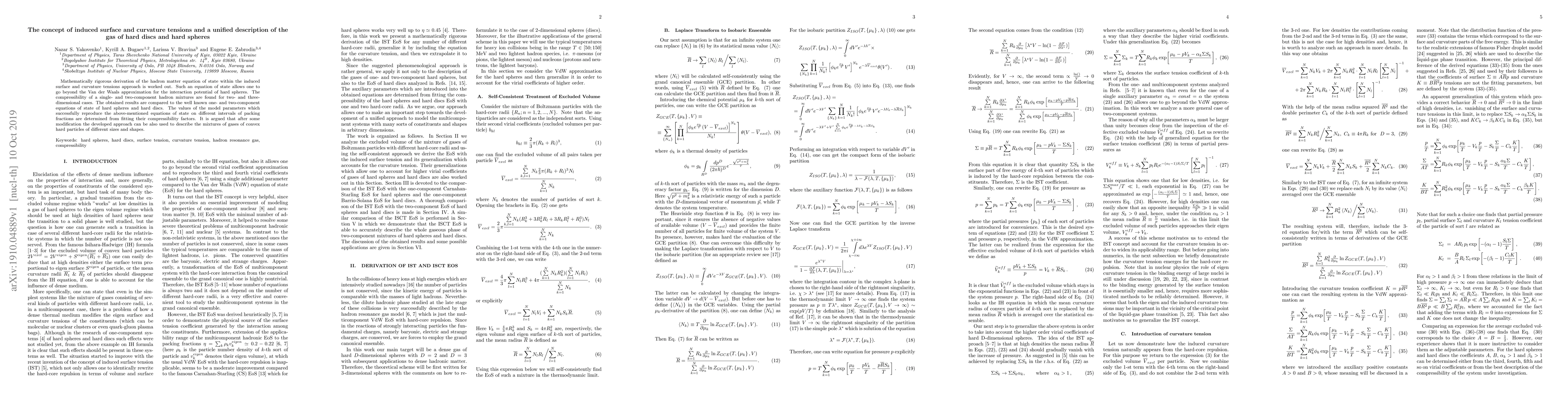 Mathematically rigorous derivation of the hadron matter equation of state within the induced surface and curvature tensions approach is worked out. Such an equation of state allows one to go beyond the Van der Waals approximation for the interaction potential of hard spheres. The compressibility of a single- and two-component hadron mixtures are found for two- and three-dimensional cases. The obtained results are compared to the well known one- and two-component equations of state of hard spheres and hard discs. The values of the model parameters which successfully reproduce the above-mentioned equations of state on different intervals of packing fractions are determined from fitting their compressibility factors. It is argued that after some modification the developed approach can be also used to describe the mixtures of gases of convex hard particles of different sizes and shapes.