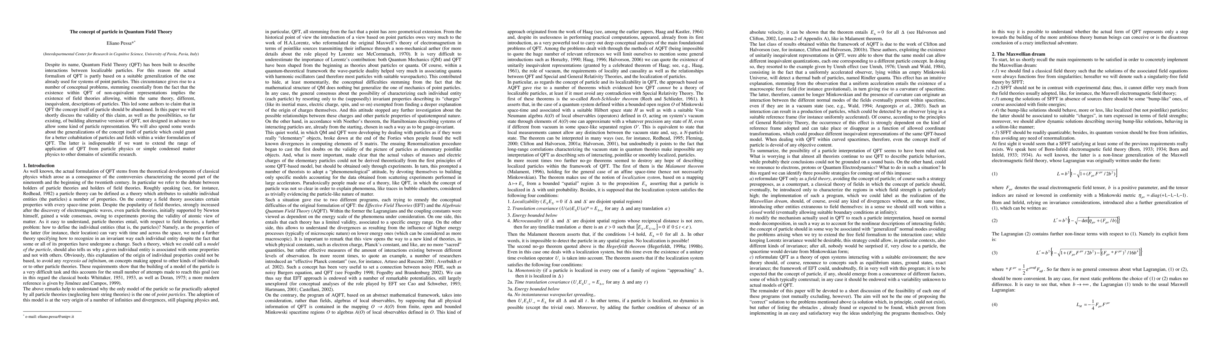 Research explores the concept of particle in Quantum Field Theory, questioning its validity due to non-equivalent representations, and proposing alternative formulations that better integrate particles and fields.