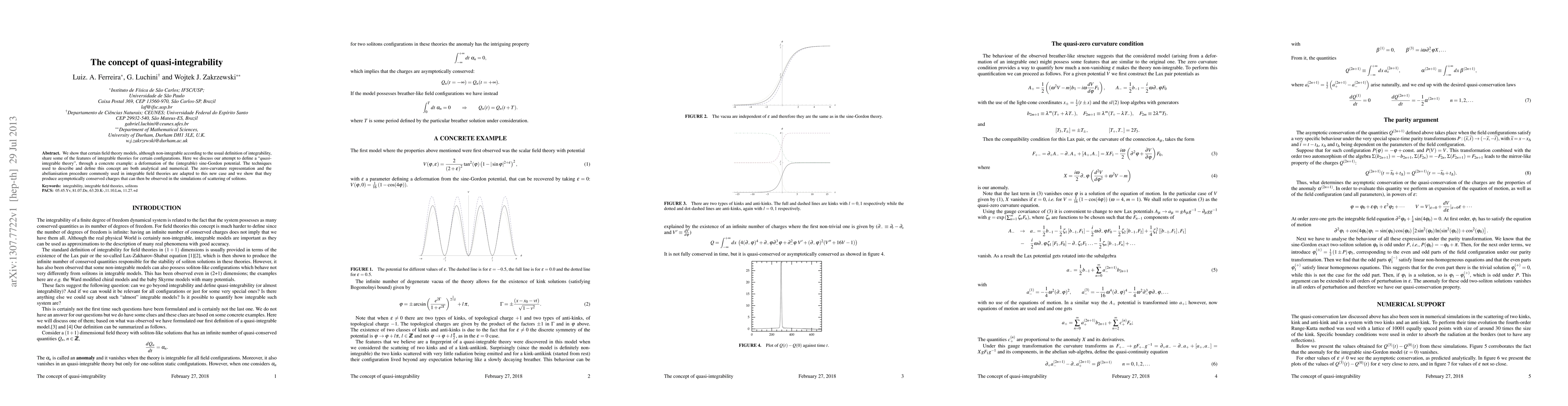 We show that certain field theory models, although non-integrable according to the usual definition of integrability, share some of the features of integrable theories for certain configurations. Here we discuss our attempt to define a "quasi-integrable theory", through a concrete example: a deformation of the (integrable) sine-Gordon potential. The techniques used to describe and define this concept are both analytical and numerical. The zero-curvature representation and the abelianisation procedure commonly used in integrable field theories are adapted to this new case and we show that they produce asymptotically conserved charges that can then be observed in the simulations of scattering of solitons.