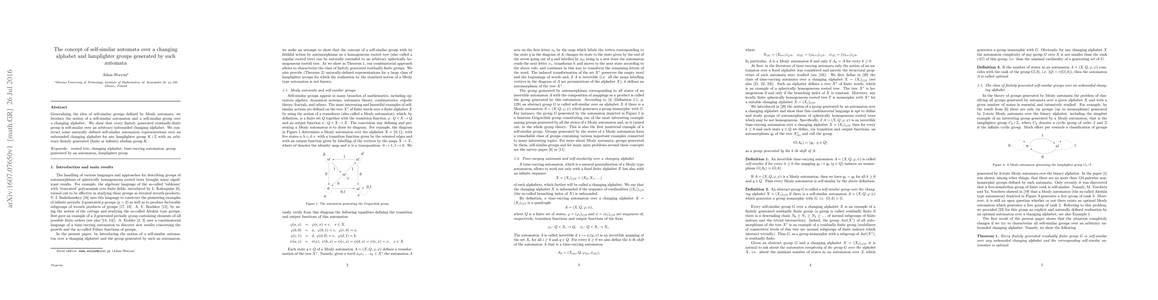This paper introduces the concept of self-similar automata and groups over a changing alphabet, proving that any finitely generated residually-finite group is self-similar over such alphabets. It also constructs self-similar automaton representations for lamplighter groups with arbitrary abelian groups.