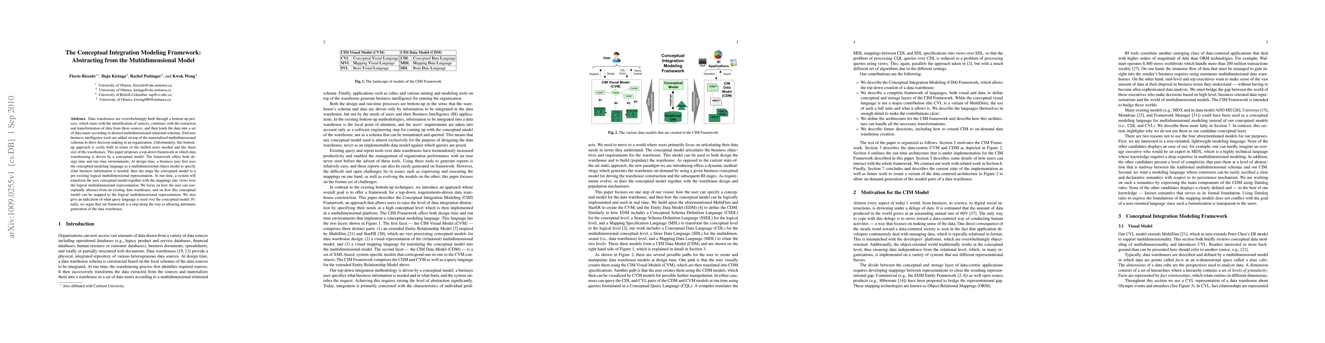 This paper proposes a top-down conceptual integration modeling framework for data warehousing, driven by a conceptual model to abstract from the existing multidimensional schemas. It aims to reduce the costs associated with the traditional bottom-up approach by automating the generation of data marts from a specified business model.