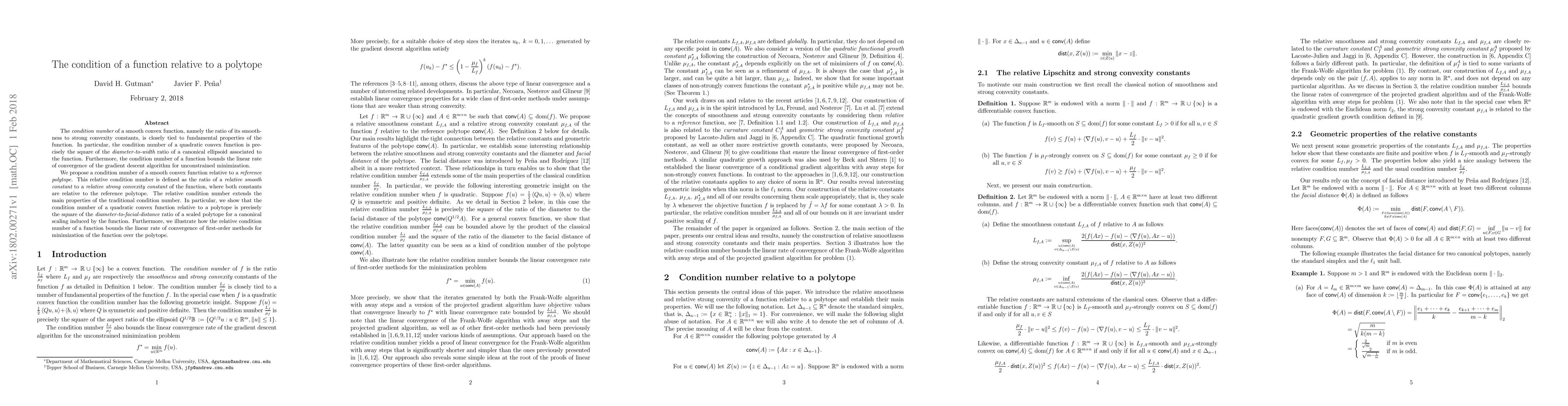 A new condition number measure for smooth convex functions relative to a polytope is proposed, showing its connection to the function's shape and convergence rates of optimization algorithms.