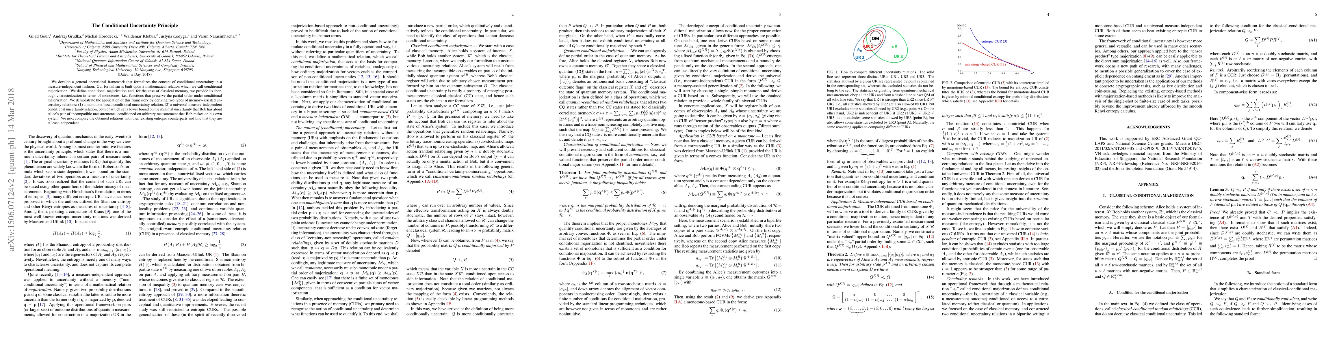 The research develops a general operational framework for conditional uncertainty using conditional majorization, characterized by monotones for classical memory, and derives two types of memory-assisted uncertainty relations.