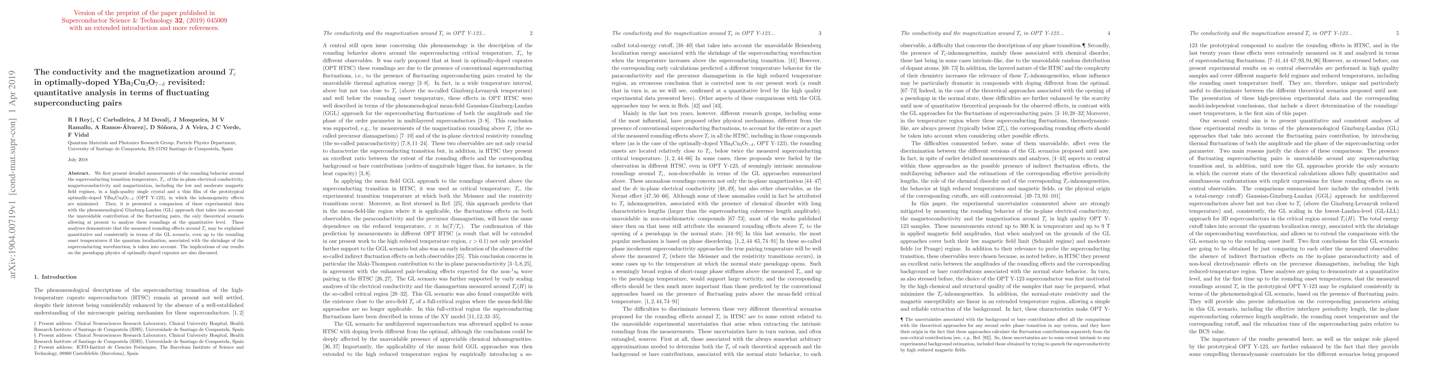 This paper presents detailed measurements of the conductivity and magnetization around the critical temperature $T_c$ in optimally-doped YBa$_2$Cu$_3$O$_{7-\delta}$, and compares these with the Ginzburg-Landau theory, showing that the observed rounding effects can be quantitatively explained by fluctuating superconducting pairs. The study also discusses implications for pseudogap physics in cuprates.