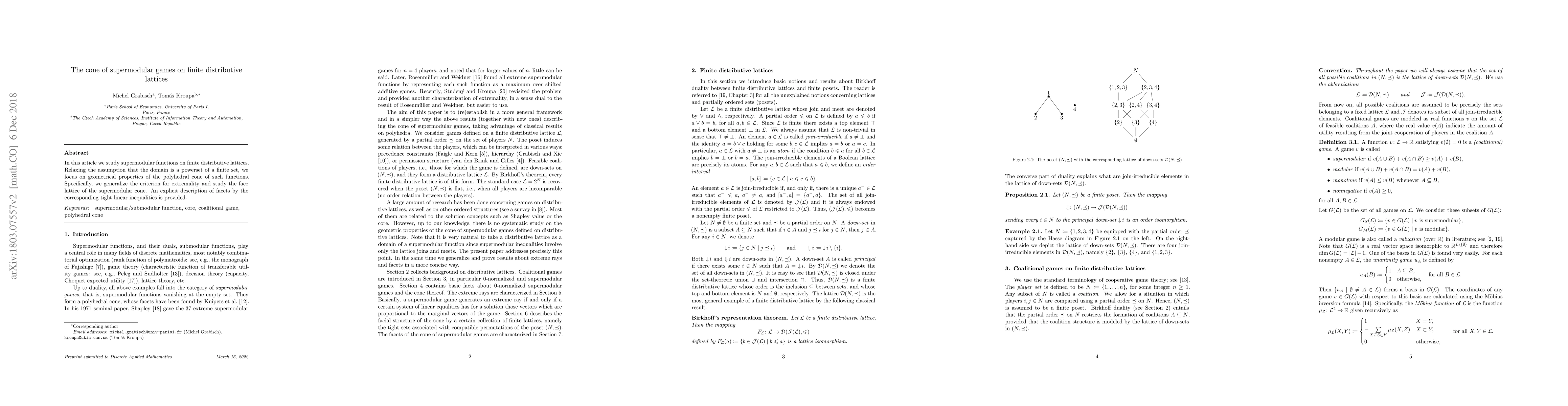 This paper investigates supermodular functions on finite distributive lattices, exploring the geometrical properties of the associated polyhedral cone. It generalizes the criterion for extremality and provides an explicit description of the cone's facets through tight linear inequalities.