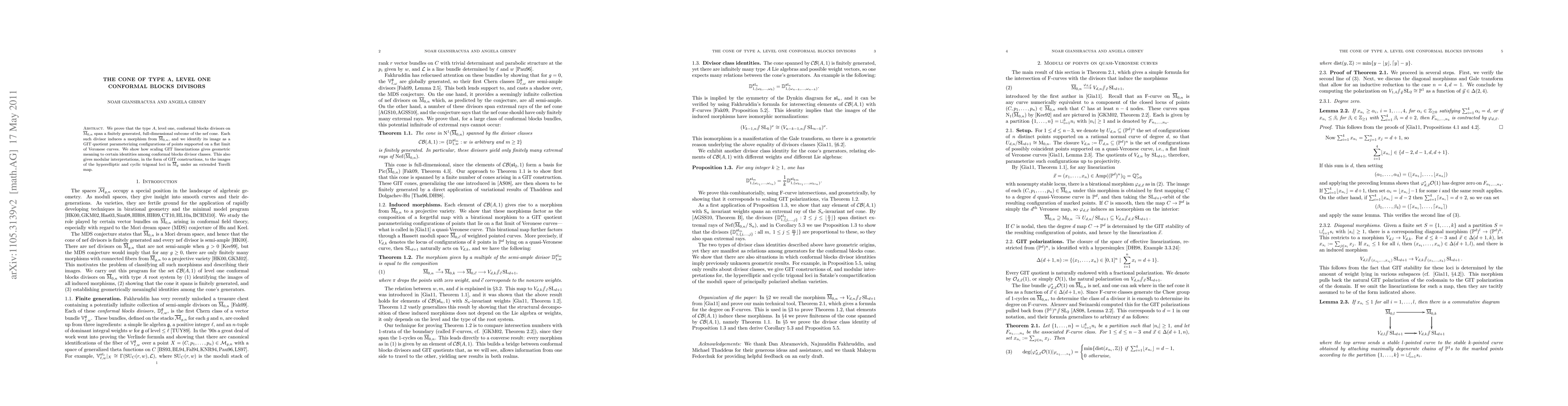 This paper proves that type A, level one conformal blocks divisors on $\bar{M}_{0,n}$ form a finitely generated, full-dimensional subcone within the nef cone. These divisors induce morphisms whose images are GIT quotients parametrizing configurations of points on flat limits of Veronese curves.