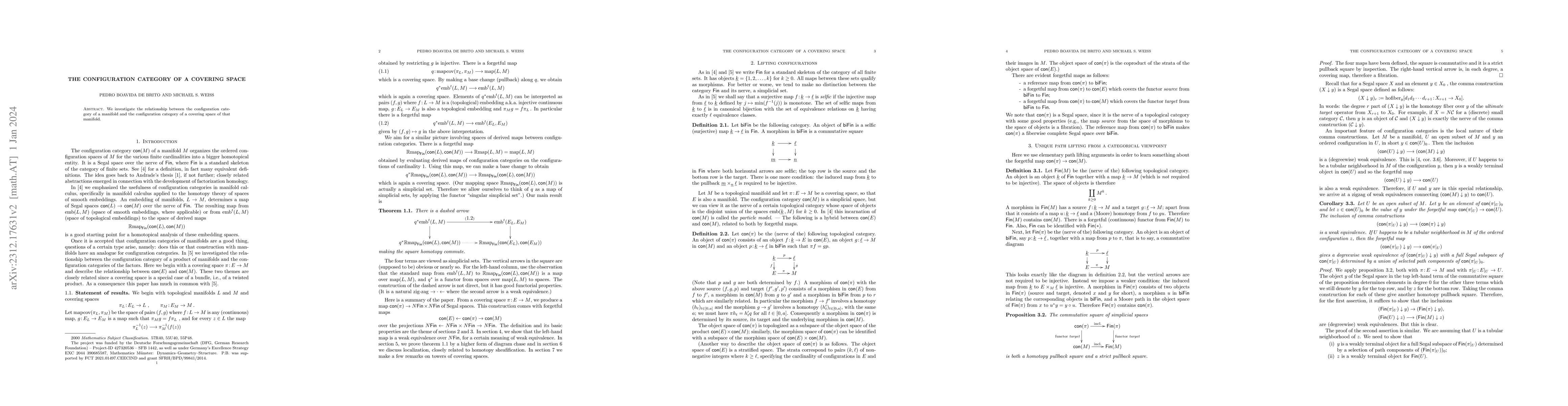 Summary: The paper explores how the configuration category of a manifold relates to that of its covering space, aiming to understand the structural differences and similarities between these topological spaces.