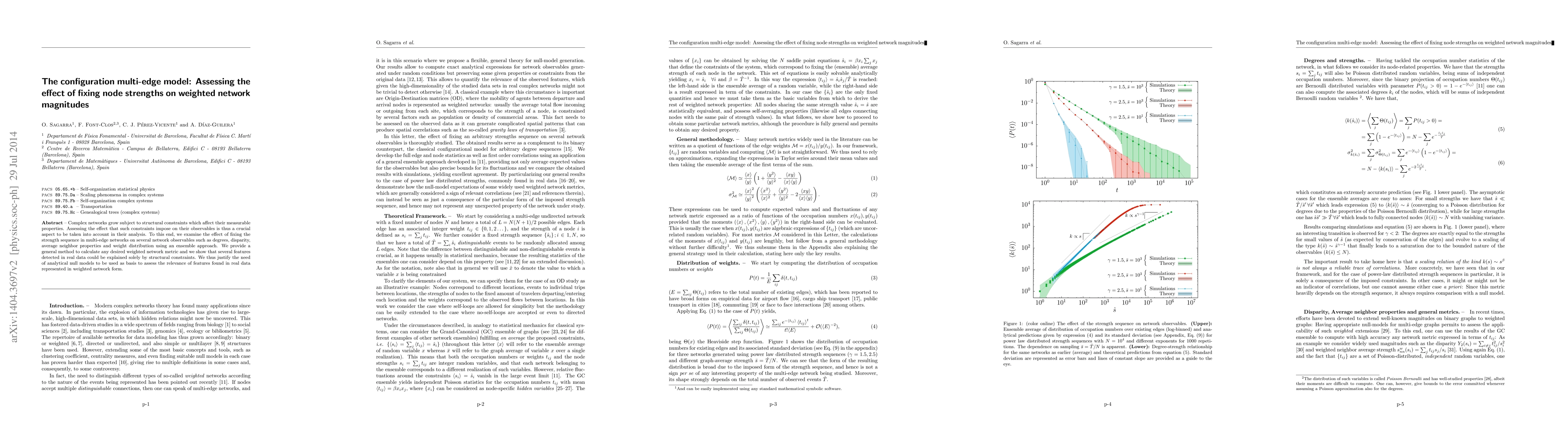 Complex networks grow subject to structural constraints which affect their measurable properties. Assessing the effect that such constraints impose on their observables is thus a crucial aspect to be taken into account in their analysis. To this end,we examine the effect of fixing the strength sequence in multi-edge networks on several network observables such as degrees, disparity, average neighbor properties and weight distribution using an ensemble approach. We provide a general method to calculate any desired weighted network metric and we show that several features detected in real data could be explained solely by structural constraints. We thus justify the need of analytical null models to be used as basis to assess the relevance of features found in real data represented in weighted network form.