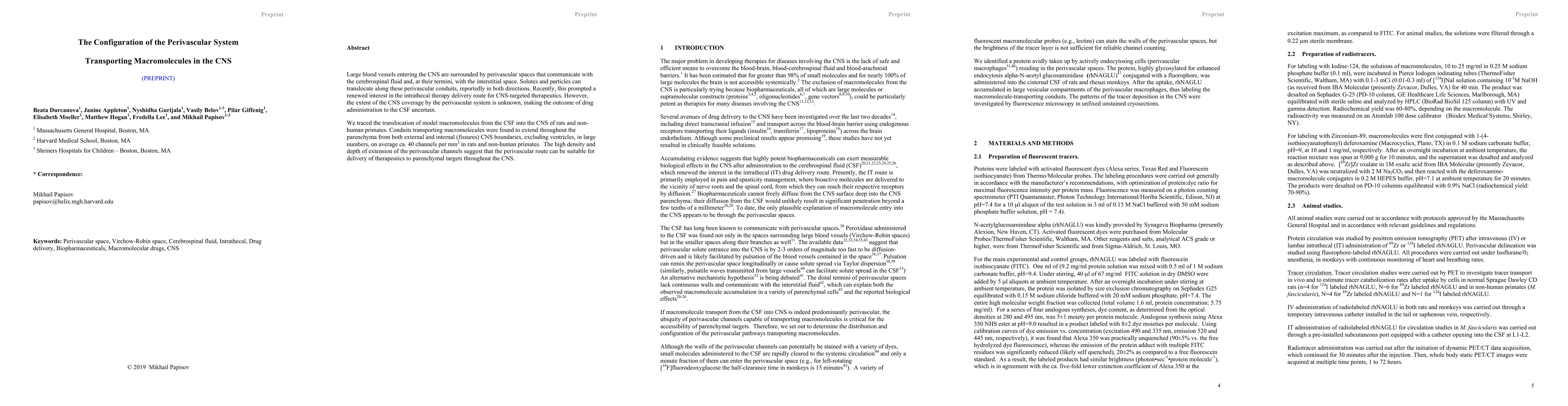 Large blood vessels entering the CNS are surrounded by perivascular spaces that communicate with the cerebrospinal fluid and, at their termini, with the interstitial space. Solutes and particles can translocate along these perivascular conduits, reportedly in both directions. Recently, this prompted a renewed interest in the intrathecal therapy delivery route for CNS-targeted therapeutics. However, the extent of the CNS coverage by the perivascular system is unknown, making the outcome of drug administration to the CSF uncertain. We traced the translocation of model macromolecules from the CSF into the CNS of rats and non-human primates. Conduits transporting macromolecules were found to extend throughout the parenchyma from both external and internal (fissures) CNS boundaries, excluding ventricles, in large numbers, on average ca. 40 channels per mm2 in rats and non-human primates. The high density and depth of extension of the perivascular channels suggest that the perivascular route can be suitable for delivery of therapeutics to parenchymal targets throughout the CNS.