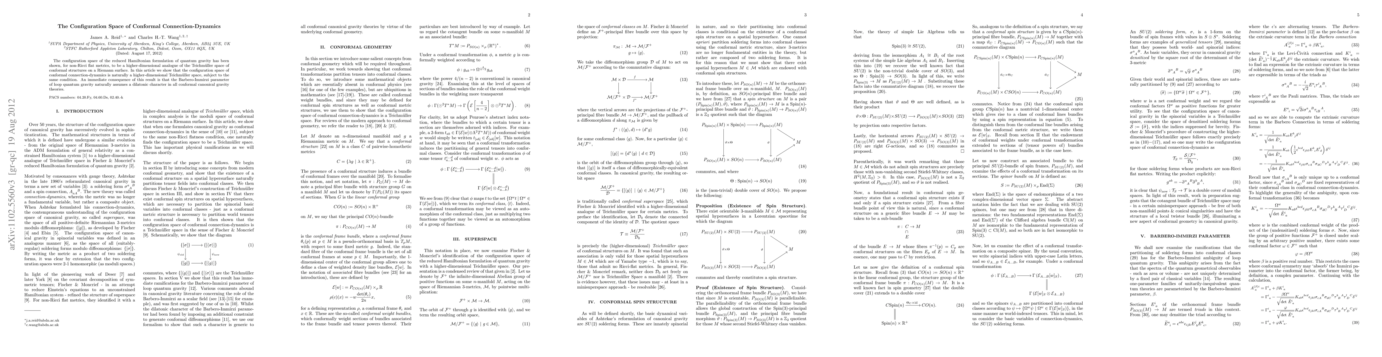 The configuration space of the reduced Hamiltonian formulation of quantum gravity has been shown, for non-Ricci flat metrics, to be a higher-dimensional analogue of the Teichm\"{u}ller space of conformal structures on a Riemann surface. In this article we show that the configuration space of conformal connection-dynamics is naturally a higher-dimensional Teichm\"{u}ller space, subject to the same condition. An immediate consequence of this result is that the Barbero-Immirzi parameter of loop quantum gravity naturally assumes a dilatonic character in all conformal canonical gravity theories.