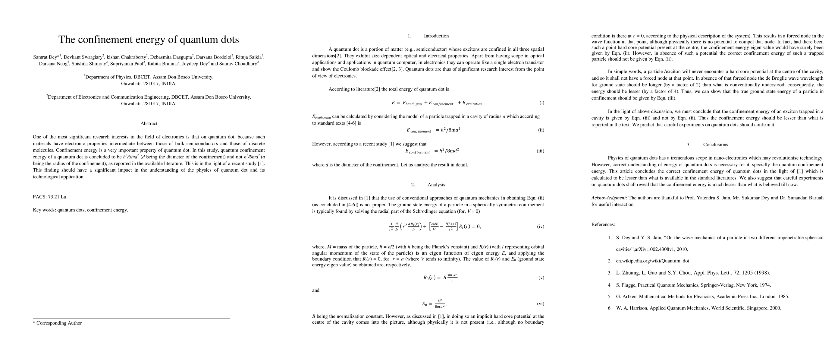 A new study confirms that quantum dot confinement energy is related to diameter (h^2/8md^2) rather than radius (h^2/8ma^2), with implications for understanding the physics of quantum dots and their technological applications.