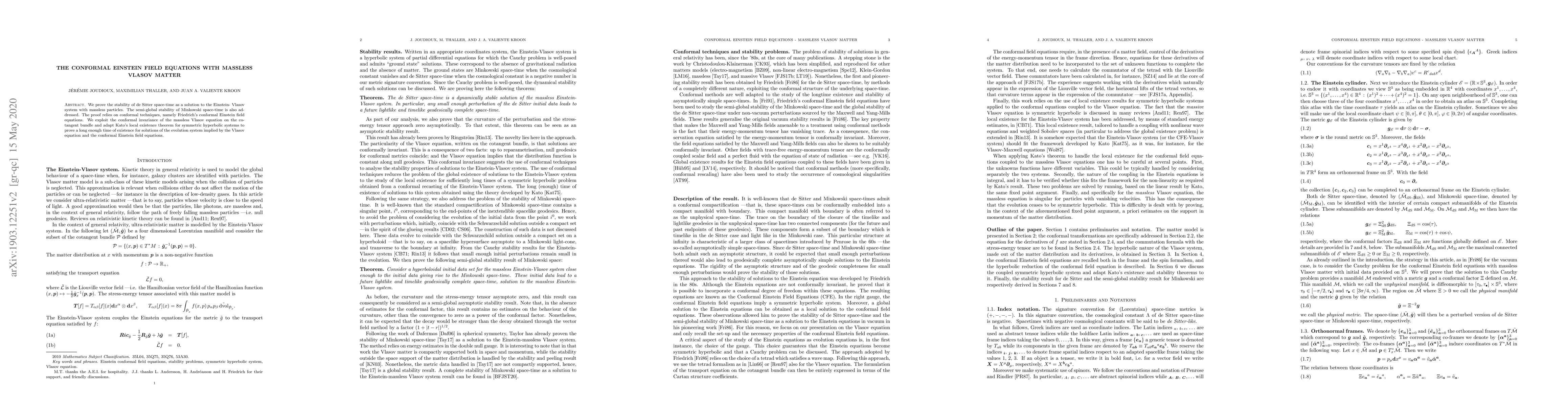 This paper proves the stability of de Sitter space-time in the Einstein-Vlasov system with massless particles using conformal techniques and Friedrich's conformal Einstein field equations. It also addresses the semi-global stability of Minkowski space-time, leveraging the conformal invariance of the massless Vlasov equation and adapting Kato's local existence theorem.
