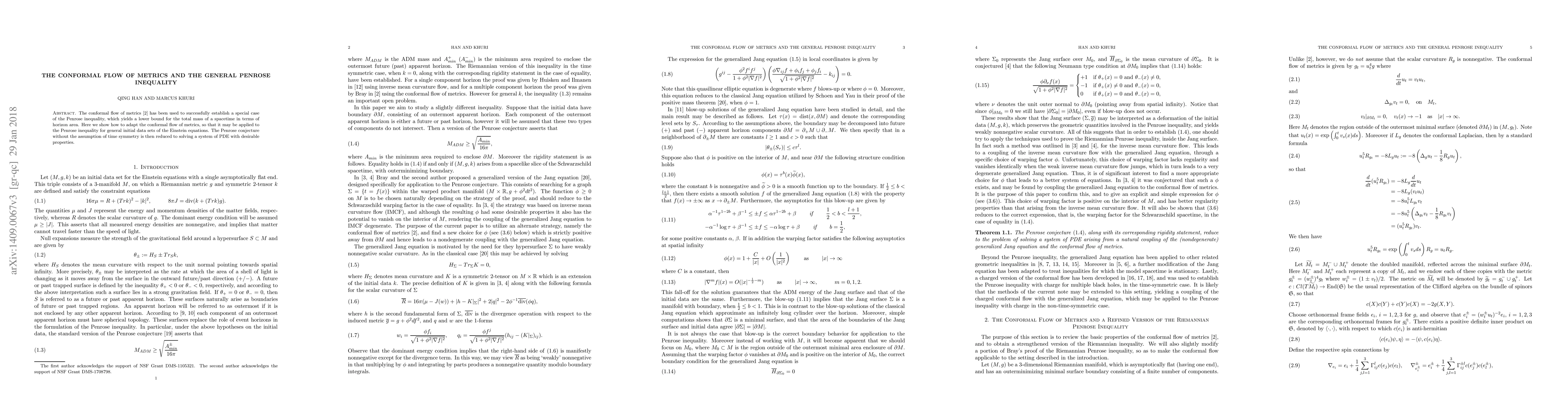 The conformal flow of metrics [2] has been used to successfully establish a special case of the Penrose inequality, which yields a lower bound for the total mass of a spacetime in terms of horizon area. Here we show how to adapt the conformal flow of metrics, so that it may be applied to the Penrose inequality for general initial data sets of the Einstein equations. The Penrose conjecture without the assumption of time symmetry is then reduced to solving a system of PDE with desirable properties.