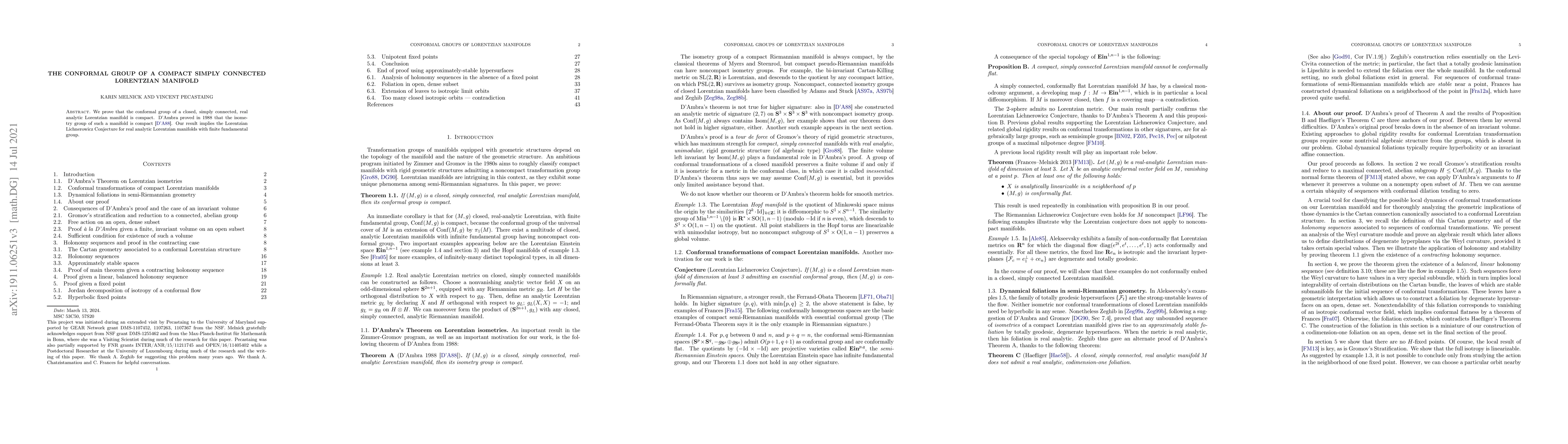 This paper proves that the conformal group of a closed, simply connected, real analytic Lorentzian manifold is compact, extending D'Ambra's 1988 result on the manifold's isometry group. The findings support the Lorentzian Lichnerowicz Conjecture for these specific manifolds.