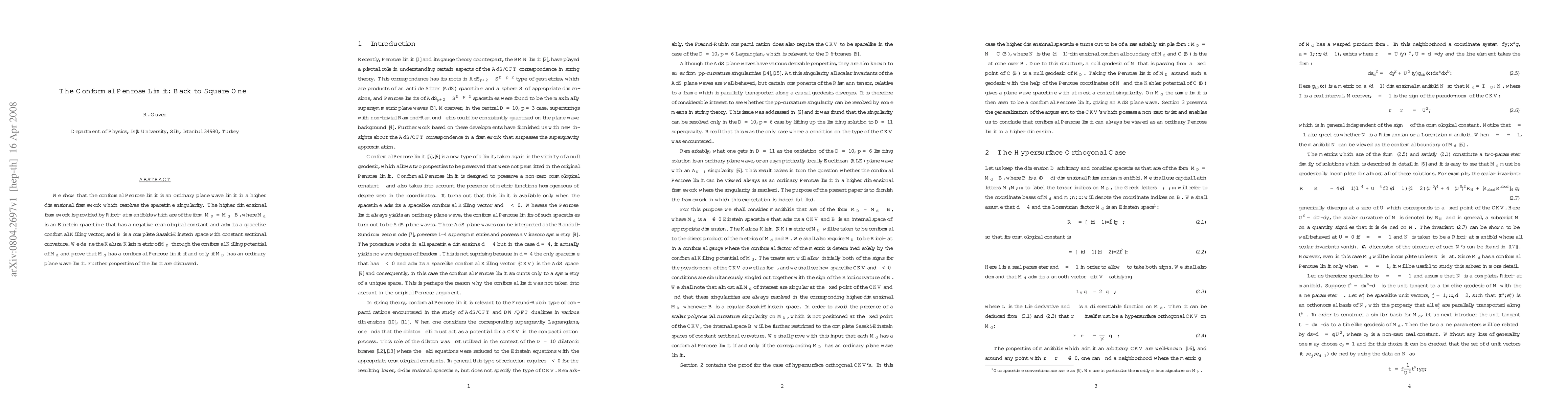 We show that the conformal Penrose limit is an ordinary plane wave limit in a higher dimensional framework which resolves the spacetime singularity. The higher dimensional framework is provided by Ricci-flat manifolds which are of the form M_D = M_d x B, where M_d is an Einstein spacetime that has a negative cosmological constant and admits a spacelike conformal Killing vector, and B is a complete Sasaki-Einstein space with constant sectional curvature. We define the Kaluza-Klein metric of M_D through the conformal Killing potential of M_d and prove that M_d has a conformal Penrose limit if and only if M_D has an ordinary plane wave limit. Further properties of the limit are discussed.