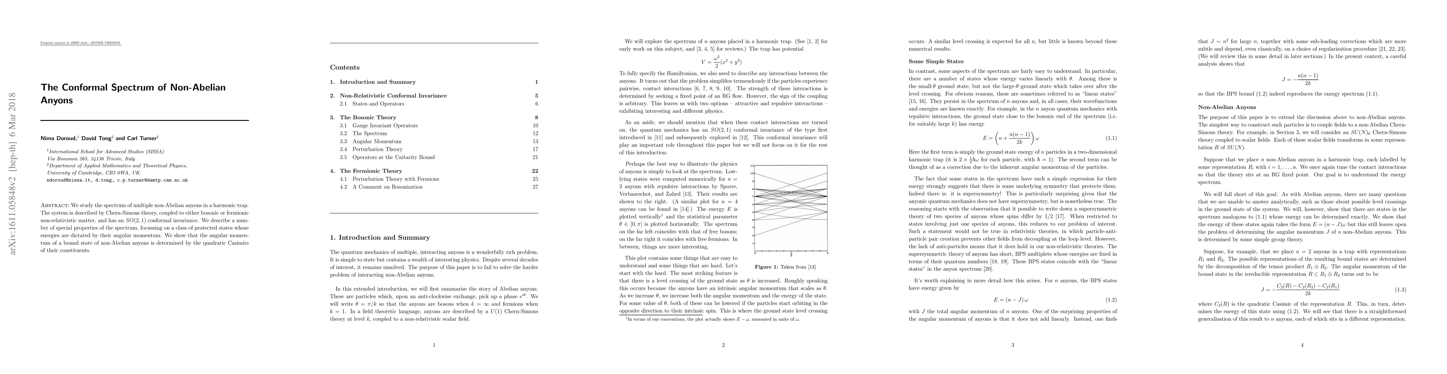 This paper investigates the conformal spectrum of non-Abelian anyons in a harmonic trap, revealing protected states whose energies are governed by angular momentum. The system's angular momentum is determined by the quadratic Casimirs of the anyons' constituents, showcasing unique properties of the spectrum.