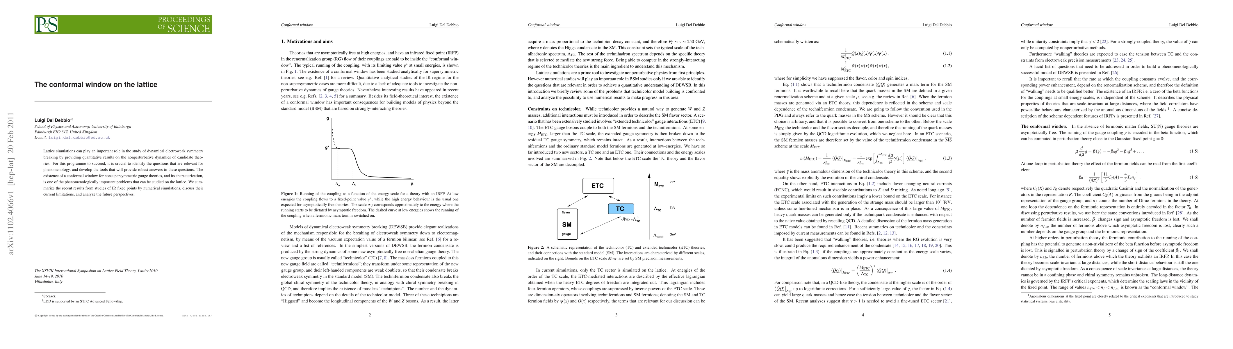 This paper discusses lattice simulations' role in studying dynamical electroweak symmetry breaking, focusing on identifying the conformal window for nonsupersymmetric gauge theories. It summarizes recent findings on infrared fixed points, highlights current limitations, and explores future research directions.