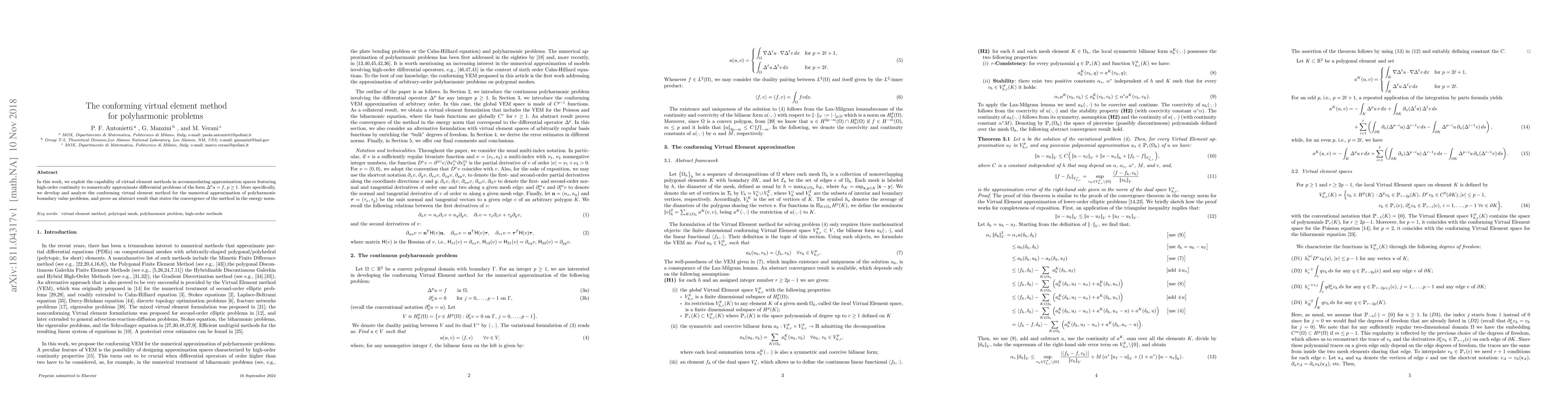 This paper develops a conforming virtual element method for solving polyharmonic boundary value problems, leveraging high-order continuity in approximation spaces, and proves its convergence in the energy norm.