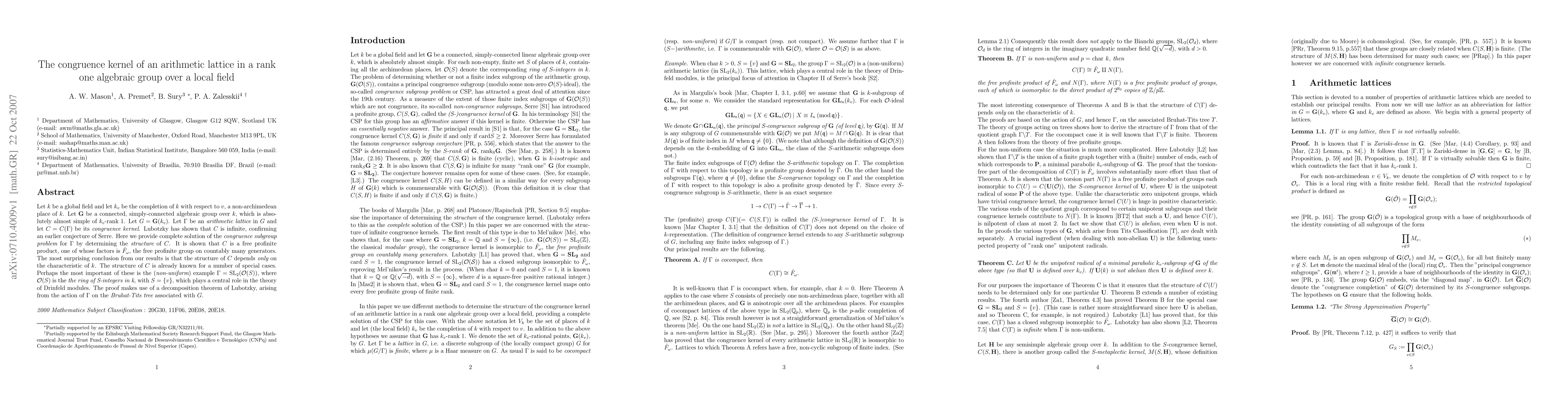 Researchers solved the congruence subgroup problem for a specific type of algebraic group over a local field, finding that its congruence kernel is a free profinite product with a key factor depending on the characteristic of the field.