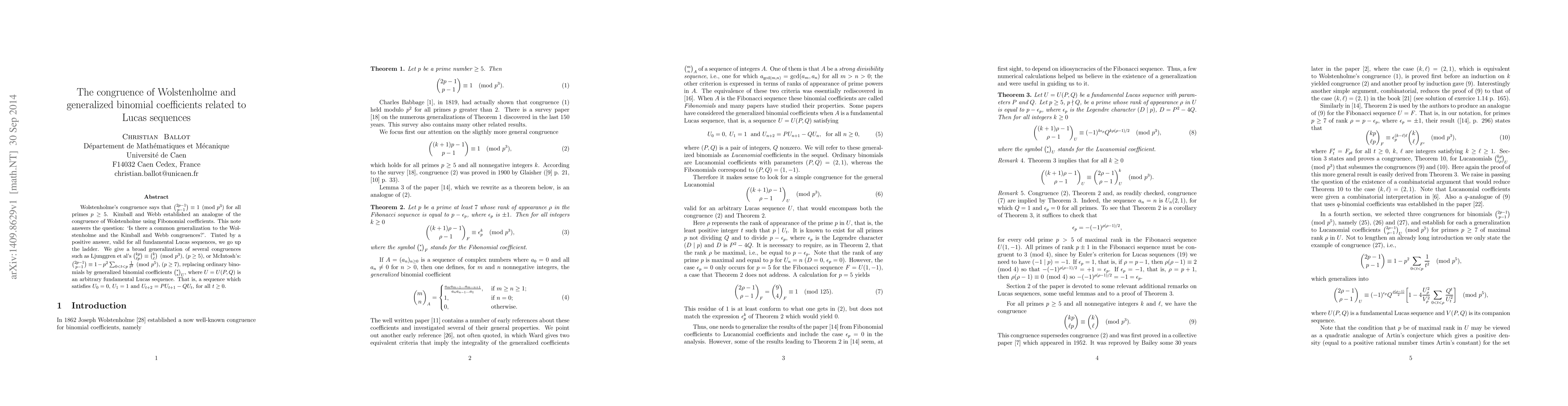 Summary: This paper establishes congruences involving generalized binomial coefficients linked to Lucas sequences, which generalize the classical Wolstenholme congruence and related stronger results. The study leverages fundamental Lucas sequences to derive these new congruences.
