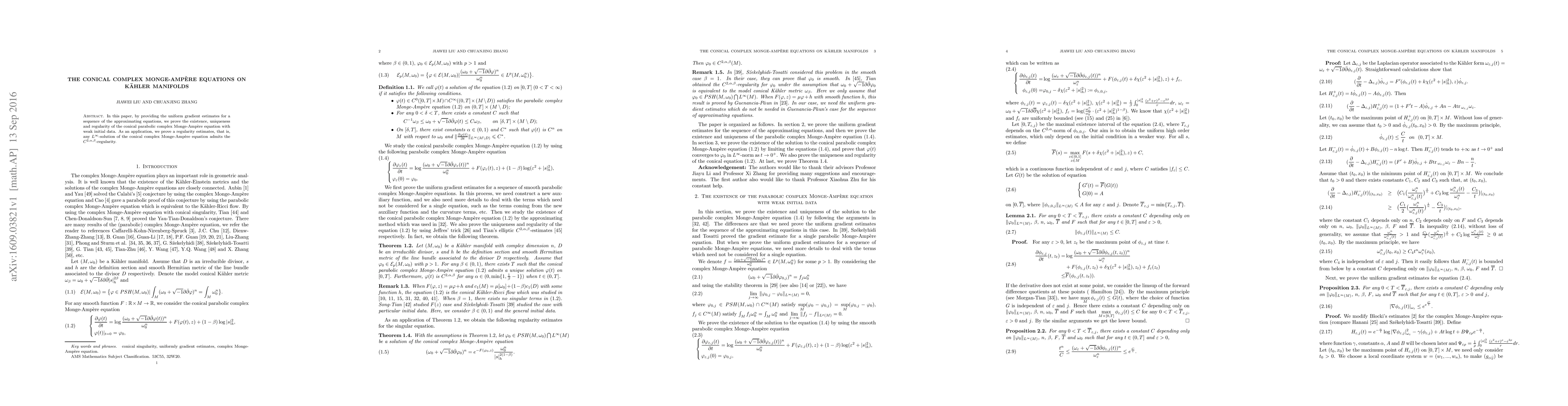 This paper establishes the existence, uniqueness, and regularity of the conical parabolic complex Monge-Ampère equation on Kähler manifolds, utilizing uniform gradient estimates for approximating sequences. It further proves $C^{2,\alpha,\beta}$-regularity for any $L^{\infty}$-solution of the conical complex Monge-Ampère equation.