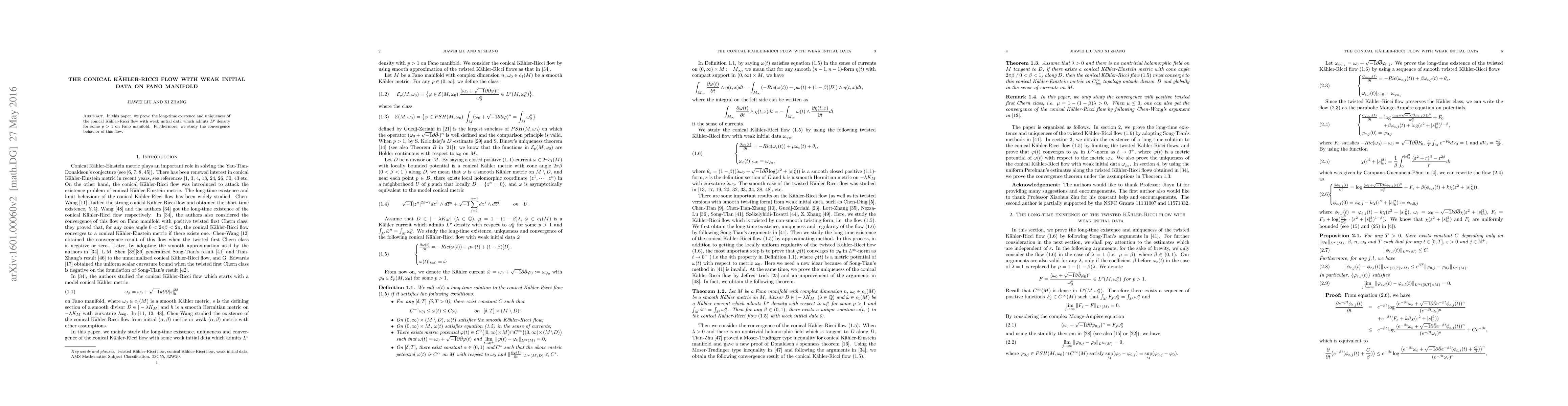 This research proves the long-term existence and uniqueness of conical Kähler-Ricci flow with less restrictive initial data on Fano manifolds, specifically those with L^p density for some p>1. It also investigates the convergence properties of such flows.