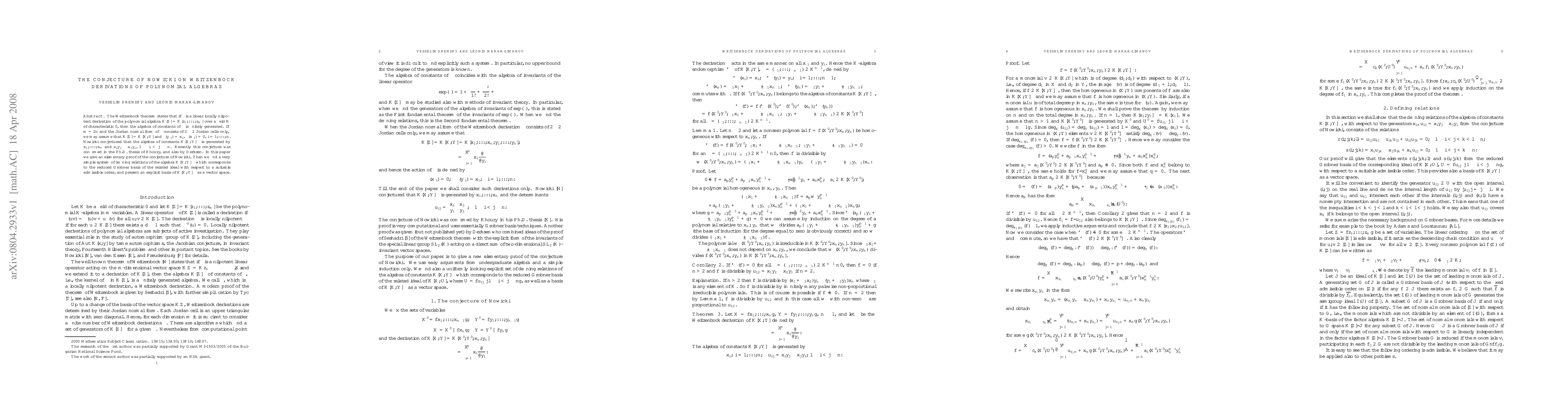 x_i to 0, i=1,...,n. Nowicki conjectured that the algebra of constants of this