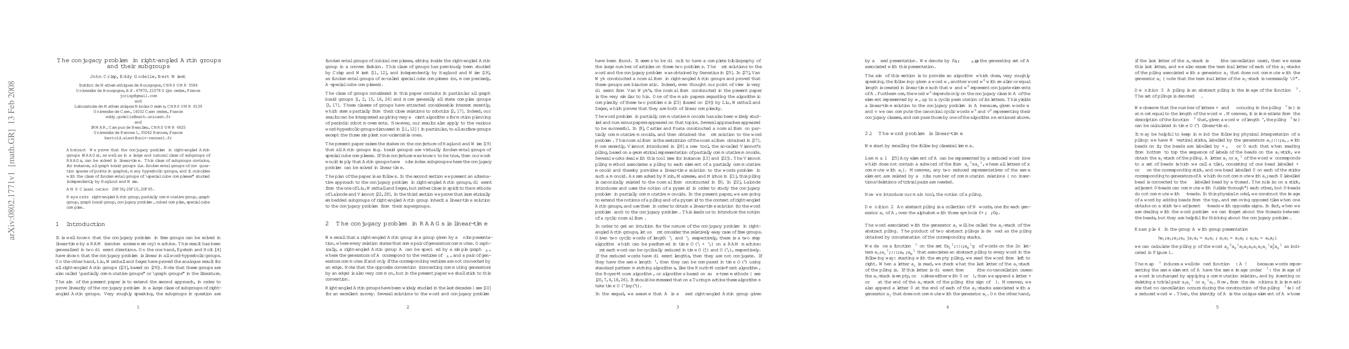 Researchers prove that conjugacy problems in right-angled Artin groups and a large class of their subgroups can be solved in linear time, with implications for understanding fundamental groups of certain geometric complexes.