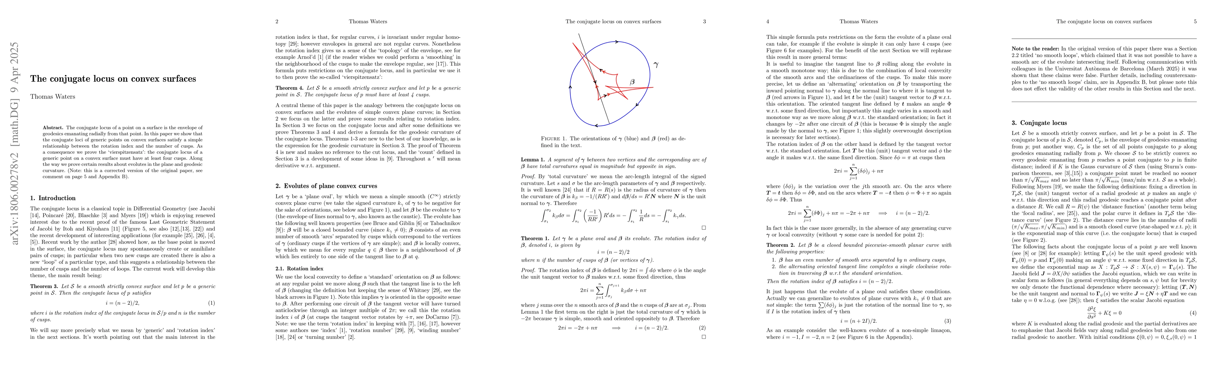 The conjugate locus of a point on a surface is the envelope of geodesics emanating radially from that point. In this paper we show that the conjugate loci of generic points on convex surfaces satisfy a simple relationship between the rotation index and the number of cusps. As a consequence we prove the `vierspitzensatz': the conjugate locus of a generic point on a convex surface must have at least four cusps. Along the way we prove certain results about evolutes in the plane and we extend the discussion to the existence of `smooth loops' and geodesic curvature.