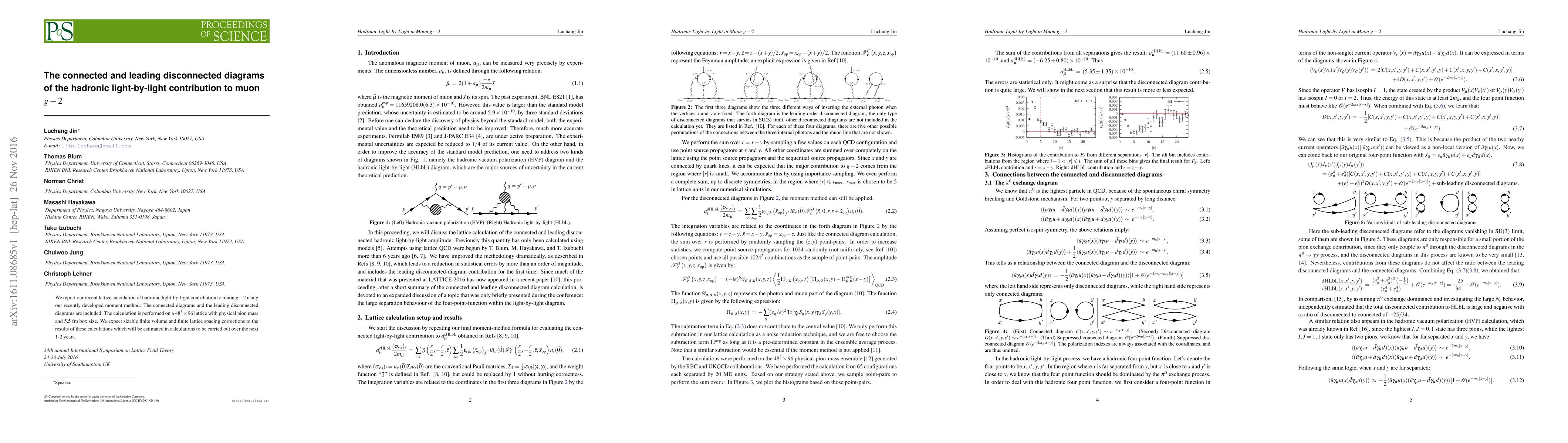 We report our recent lattice calculation of hadronic light-by-light contribution to muon $g-2$ using our recently developed moment method. The connected diagrams and the leading disconnected diagrams are included. The calculation is performed on a $48^3 \times 96$ lattice with physical pion mass and 5.5 fm box size. We expect sizable finite volume and finite lattice spacing corrections to the results of these calculations which will be estimated in calculations to be carried out over the next 1-2 years.