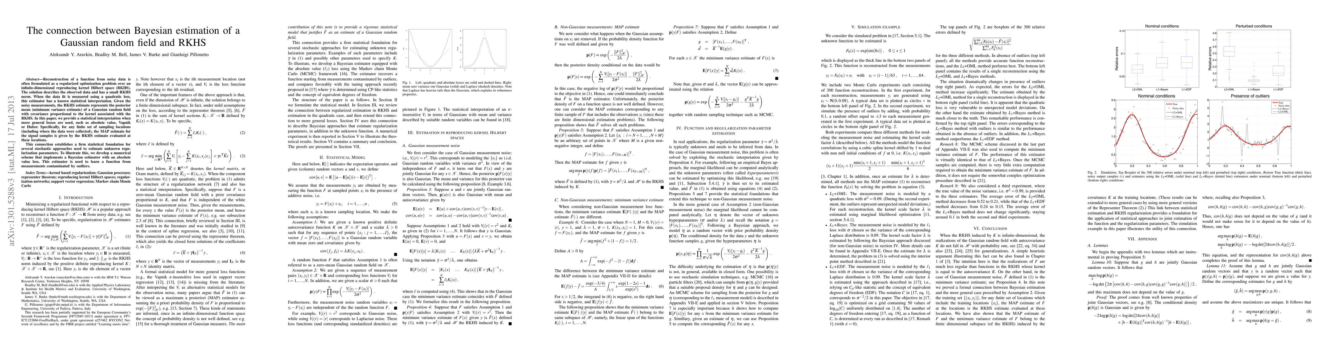 This paper explores the statistical interpretation of RKHS estimates in function reconstruction from noisy data, showing that the RKHS estimate corresponds to the posterior mean of a Gaussian random field under various loss functions. It concludes that the RKHS estimate represents the maximum a posteriori (MAP) estimate for signal samples at sampled locations.