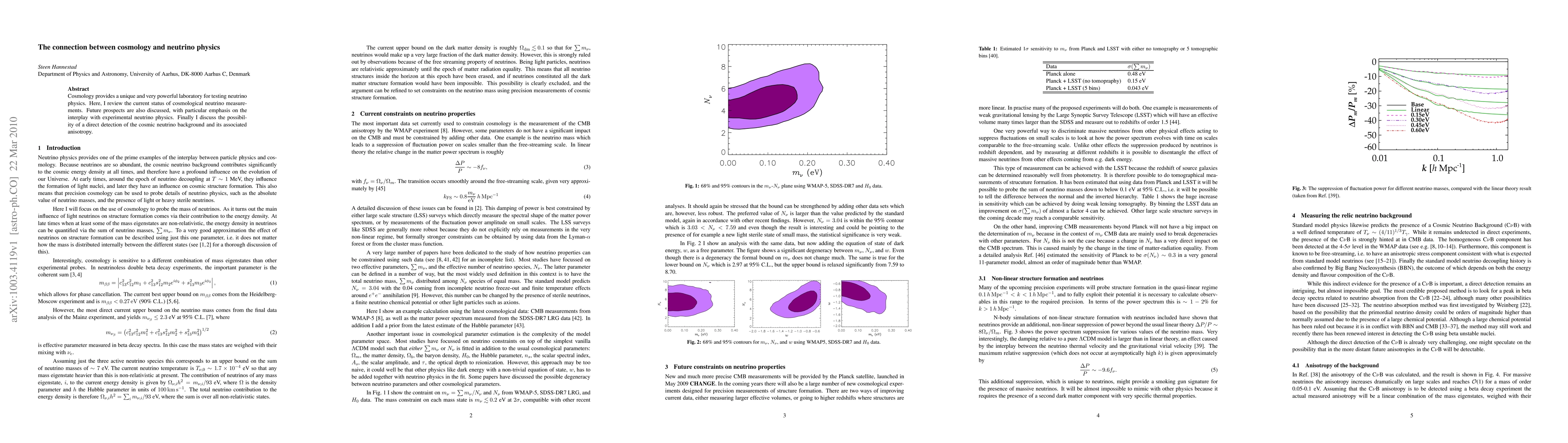 Cosmology provides a unique and very powerful laboratory for testing neutrino physics. Here, I review the current status of cosmological neutrino measurements. Future prospects are also discussed, with particular emphasis on the interplay with experimental neutrino physics. Finally I discuss the possibility of a direct detection of the cosmic neutrino background and its associated anisotropy.