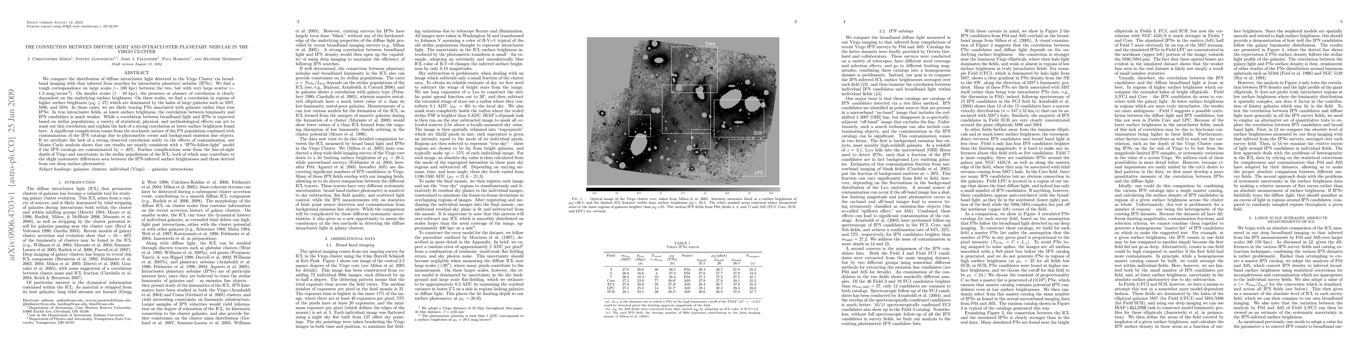 This study investigates the relationship between diffuse intracluster light and intracluster planetary nebulae (IPNe) in the Virgo Cluster, finding a large-scale correlation but significant scatter. On smaller scales, a correlation exists in regions of higher surface brightness dominated by large galaxies, while true intracluster fields show a weaker correlation, suggesting various factors diminish this relationship.