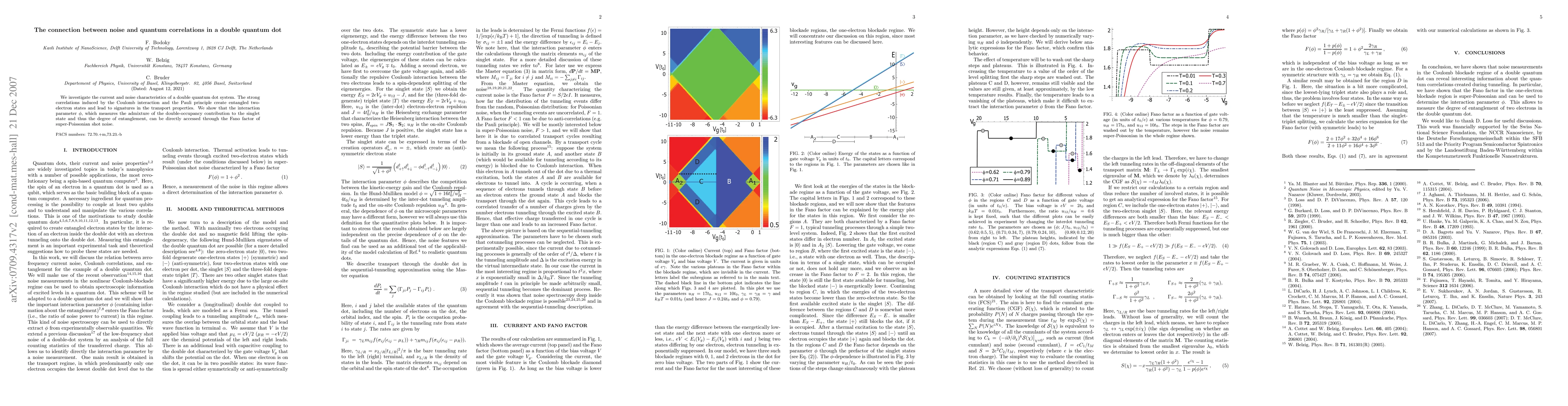 This paper explores the transport and noise characteristics of a double quantum dot system, revealing that strong Coulomb interactions induce entangled electron states and that the degree of entanglement, measured by the interaction parameter phi, can be inferred from the Fano factor of super-Poissonian shot noise.