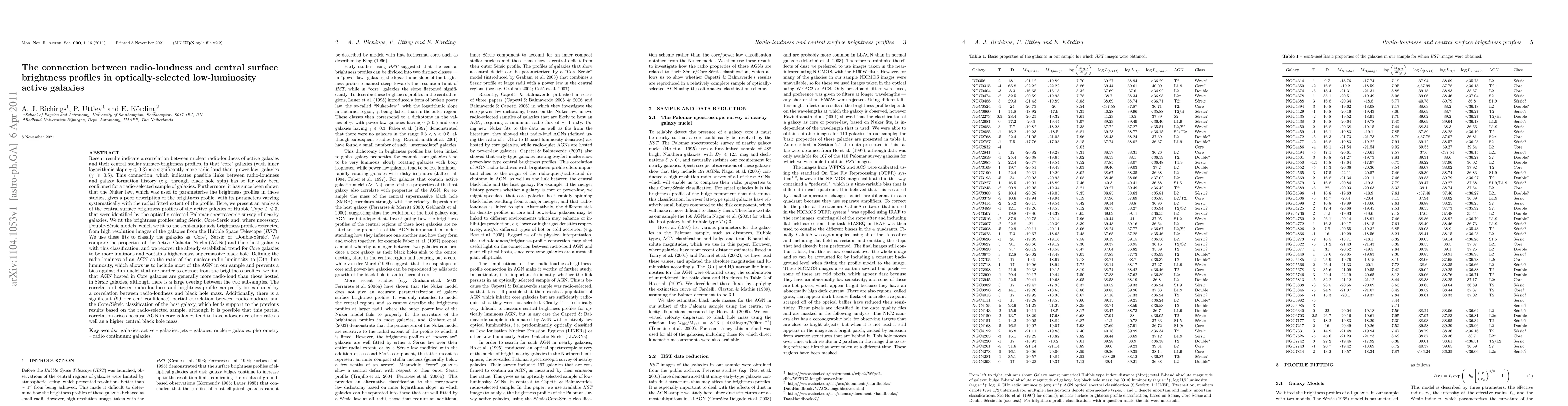Recent results indicate a correlation between nuclear radio-loudness of active galaxies and their central stellar surface-brightness profiles, in that `core' galaxies (with inner logarithmic slope {\gamma}<0.3) are significantly more radio loud than `power-law' galaxies ({\gamma}>0.5). This connection, which indicates possible links between radio-loudness and galaxy formation history (e.g. through black hole spin) has so far only been confirmed for a radio-selected sample of galaxies. Furthermore, it has since been shown that the Nuker law, which was used to parameterise the brightness profiles in these studies, gives a poor description of the brightness profile. Here, we present an analysis of the central surface brightness profiles of the active galaxies of Hubble Type T<3, that were identified by the optically-selected Palomar spectroscopic survey of nearby galaxies. We fit the brightness profiles using Sersic, Core-Sersic and, where necessary, Double-Sersic models, which we fit to the semi-major axis brightness profiles extracted from high resolution images of the galaxies from the Hubble Space Telescope (HST). We use these fits to classify the galaxies as `Core', `Sersic' or `Double-Sersic' and compare this classification with the properties of the Active Galactic Nuclei (AGNs). We find that AGN hosted in Core galaxies are generally more radio-loud than those hosted in Sersic galaxies, although there is a large overlap between the two subsamples. The correlation between radio-loudness and brightness profile can partly be explained by a correlation between radio-loudness and black hole mass. Additionally, there is a significant (99 per cent confidence) partial correlation between radio-loudness and the Core/Sersic classification of the host galaxy, which lends support to the previous results based on the radio-selected sample.
