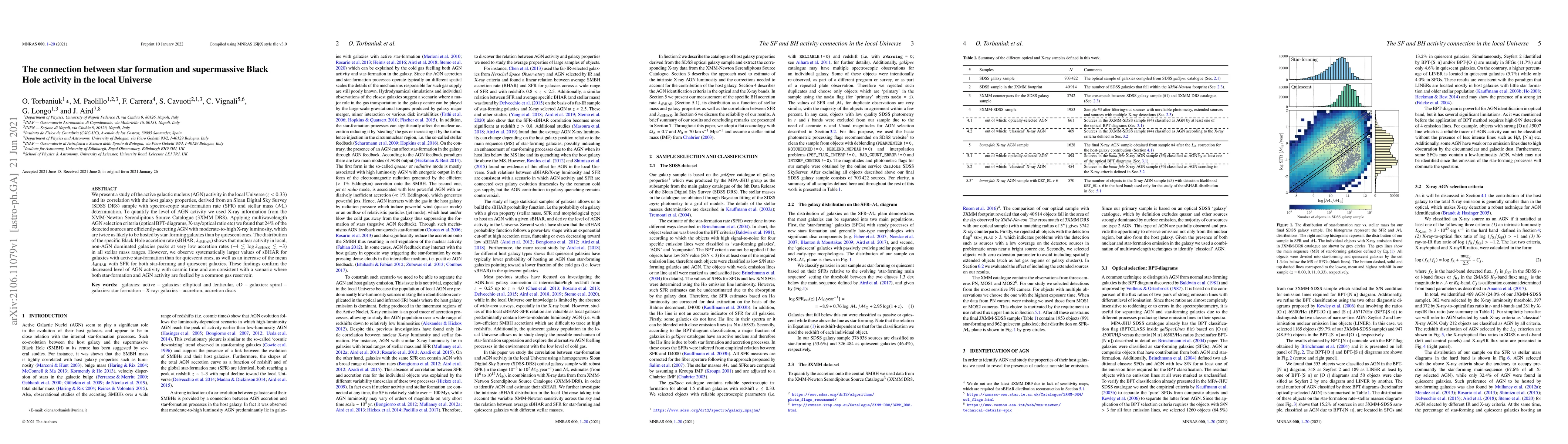 This study investigates the relationship between active galactic nucleus (AGN) activity and star formation in nearby galaxies, finding that AGNs are more prevalent in star-forming galaxies. The research shows a correlation between higher AGN accretion rates and active star-formation, suggesting a shared gas reservoir fuels both processes.