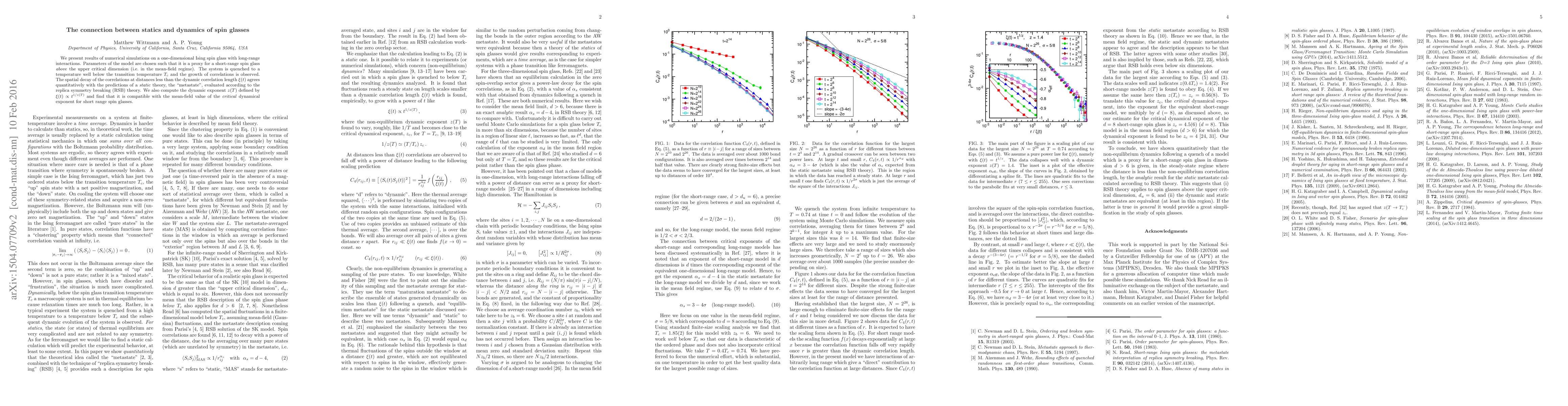This paper investigates a one-dimensional Ising spin glass with long-range interactions, finding that spatial decay correlations match predictions from static metastate theory. The dynamic correlation length's growth is consistent with mean-field critical dynamics, supporting the replica symmetry breaking theory.