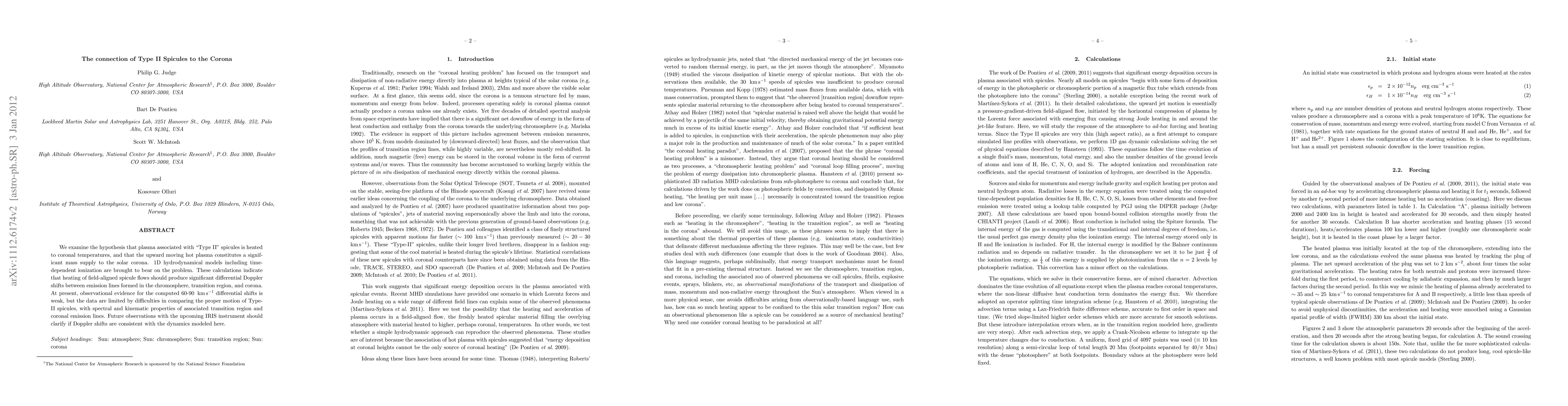 This paper explores the hypothesis that Type II spicules transport heated plasma to the solar corona, potentially supplying significant mass. The study uses 1D hydrodynamical models to predict differential Doppler shifts, suggesting that current observations lack sufficient data to confirm these shifts, but future IRIS instrument observations may provide clarity.