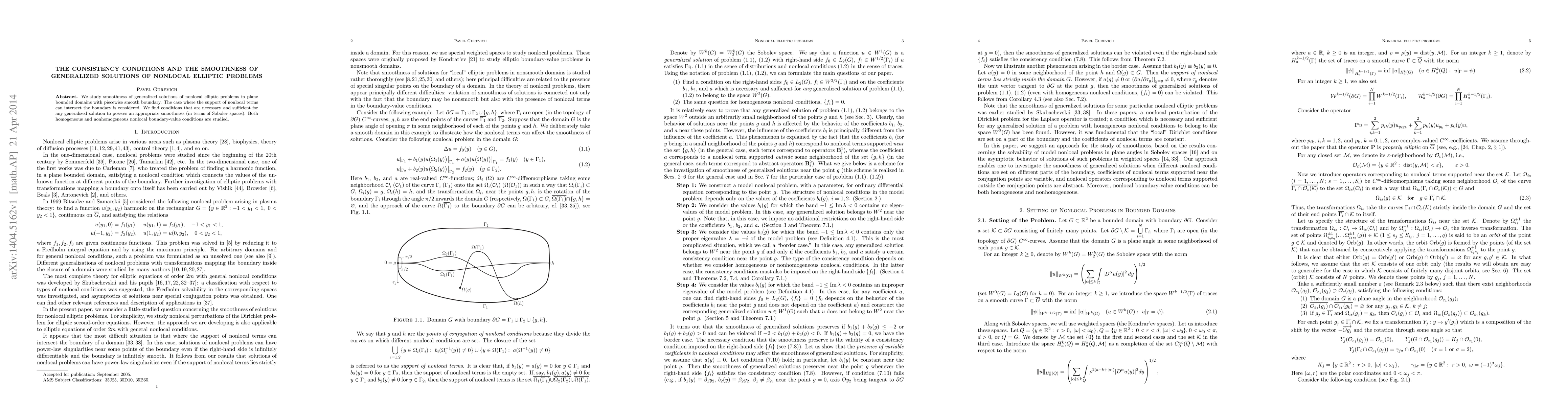 This paper investigates the smoothness conditions for generalized solutions of nonlocal elliptic problems in bounded plane domains with piecewise smooth boundaries, focusing on cases where nonlocal terms intersect the boundary. It establishes necessary and sufficient conditions for the solutions to achieve specific smoothness in Sobolev spaces, considering both homogeneous and nonhomogeneous boundary conditions.