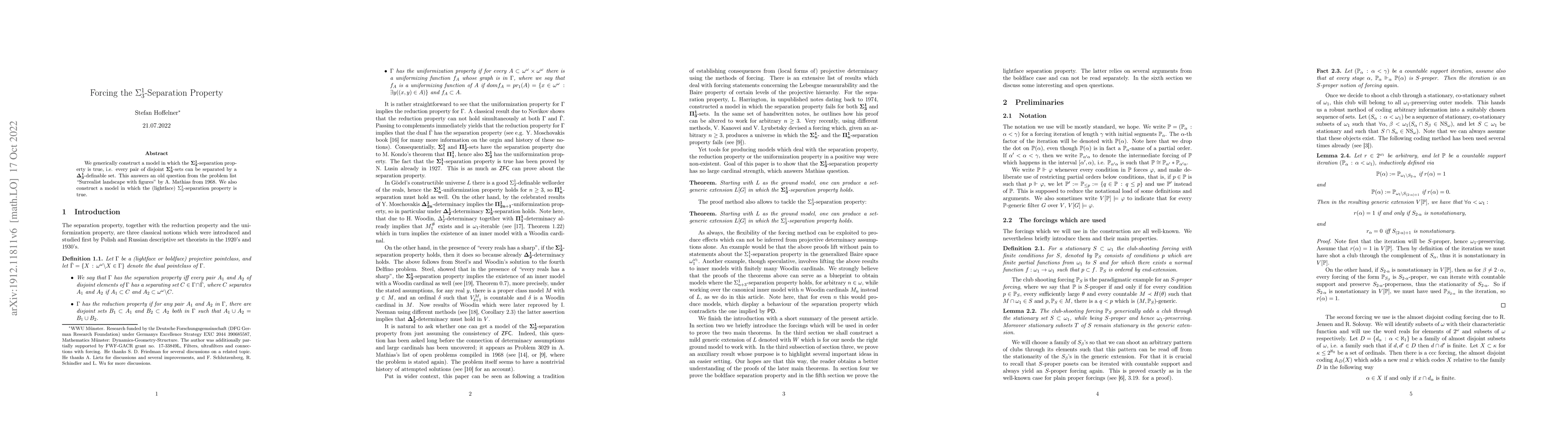 This paper constructs models where the $\bf{\Sigma^1_3}$-separation property holds, addressing a longstanding question from A. Mathias' 1968 problem list. It also demonstrates the validity of the lightface $\Sigma^1_3$-separation property in a constructed model.