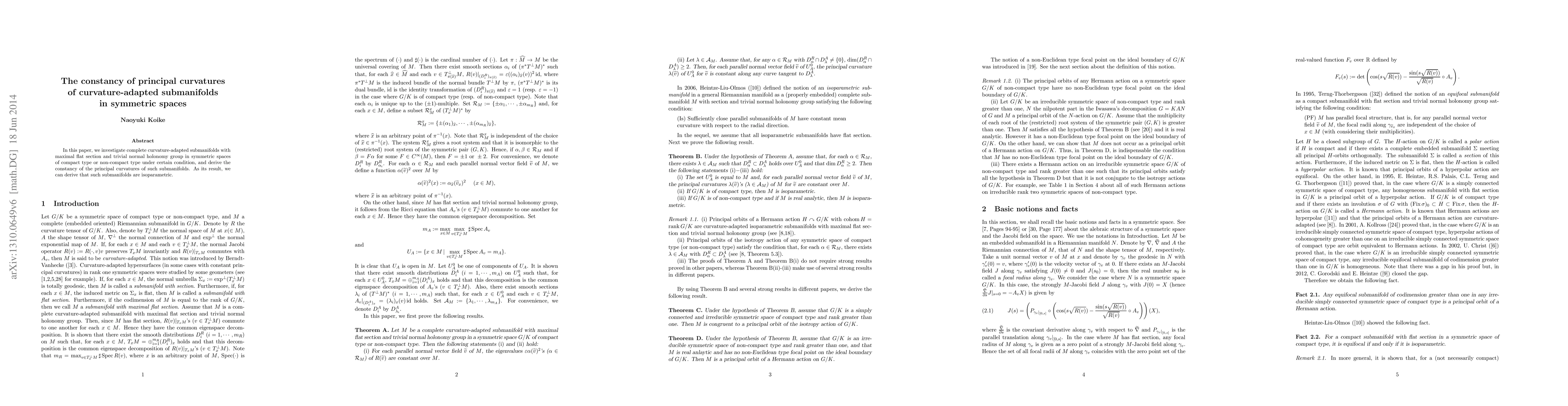 This paper explores complete curvature-adapted submanifolds in symmetric spaces, proving that under specific conditions, these submanifolds have constant principal curvatures and are thus isoparametric. The study focuses on both compact and non-compact symmetric spaces.